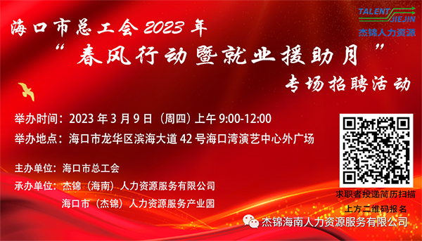 6月24日上午9時(shí)-12時(shí),由海口市龍華區(qū)人力資源和社會(huì)保障局、海口市(龍華)人力資源服務(wù)產(chǎn)業(yè)園主辦,杰...
